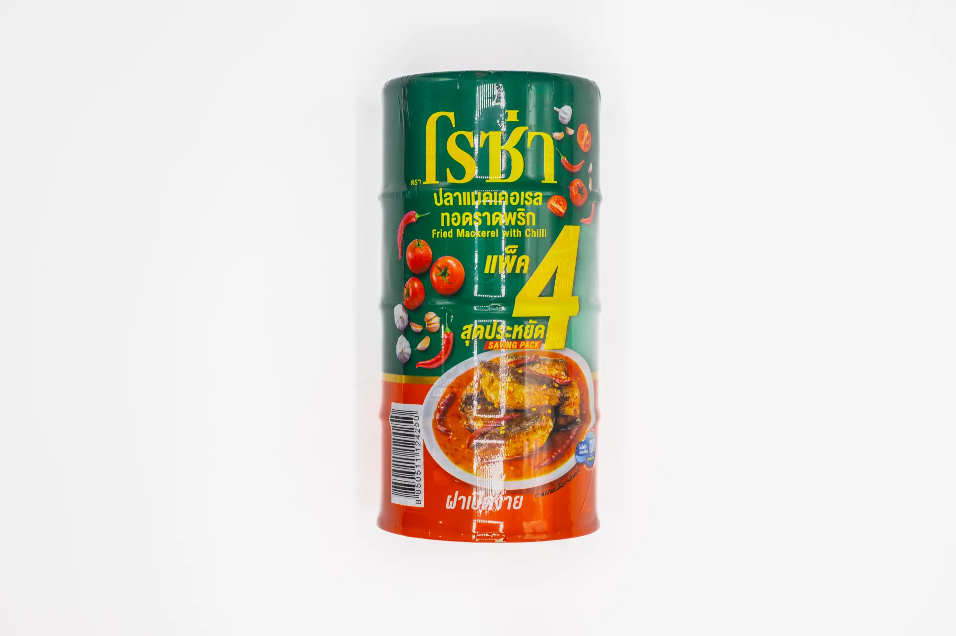 / ปลาแมคเคอเรลทอดกระป๋องในซอสพริก ยี่ห้อ Roza